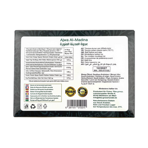 تمر عجوة المدينة (400 غرام) من جاكو، موطنها مدينة المدينة المنورة، وتتميز بجودتها الاستثنائية وحلاوتها وقوامها الرقيق. هذا التمر غني بالعناصر الغذائية الطبيعية والألياف ومضادات الأكسدة التي تدعم نظامًا غذائيًا صحيًا.