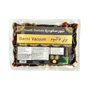 تمر بارني المفرغ من الهواء (900 غرام) معبأ بعناية فائقة للحفاظ على نضارته الطبيعية وعصارته ونكهته الغنية. يُعد هذا التمر مثالياً كوجبة خفيفة صحية، أو للخبز، أو كمُحلي طبيعي في مختلف الأطباق.