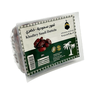 تأتي تمور الخضري لدينا مباشرةً من المناطق المشمسة في المملكة العربية السعودية، وهي من بين أشهر أنواع التمور في العالم. تتميز بملمسها الناعم اللذيذ، وقوامها المطاطي قليلاً، ونكهتها الغنية التي تشبه الكراميل.