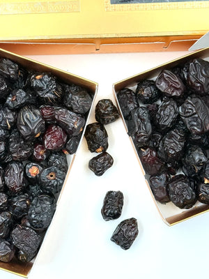 Saudi Ajwa dates originate from Saudi Arabia and are among the well-known Ajwa date varieties. They are characterized by their dark brown to almost black color and their soft to slightly dry texture.