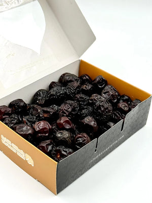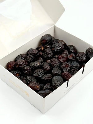 Saudi Ajwa Datteln stammen aus Saudi-Arabien und gehören zu den bekannten Ajwa-Dattelsorten. Sie zeichnen sich durch ihre dunkelbraune bis fast schwarze Farbe sowie ihre weiche bis leicht trockene Konsistenz aus.